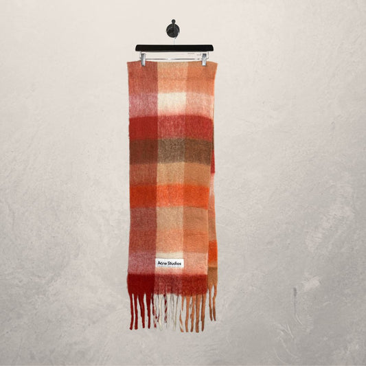 Acne Studios oranje geruite sjaal van kasjmierwolmix 220 x 50 cm