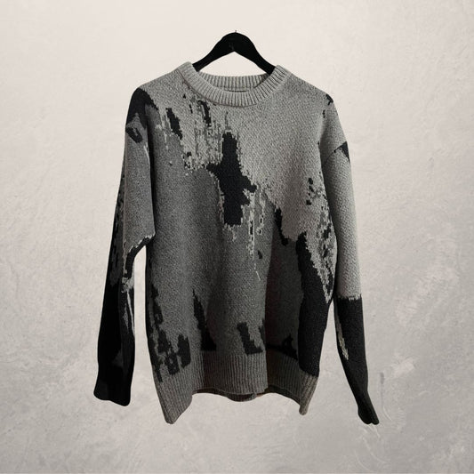 UitverkochtVintage grijze marmeren gebreide trui L