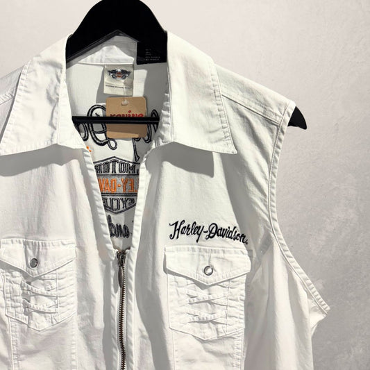 Vintage Harley Davidson wit mouwloos logo shirt L