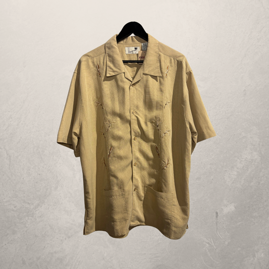 Vintage Island Republic 100% zijden overhemd met rode print L
