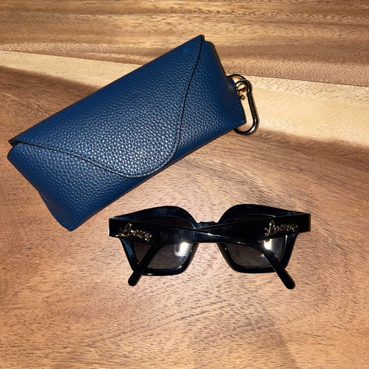UitverkochtVintage Loewe zonnebril met zwart en goud logo