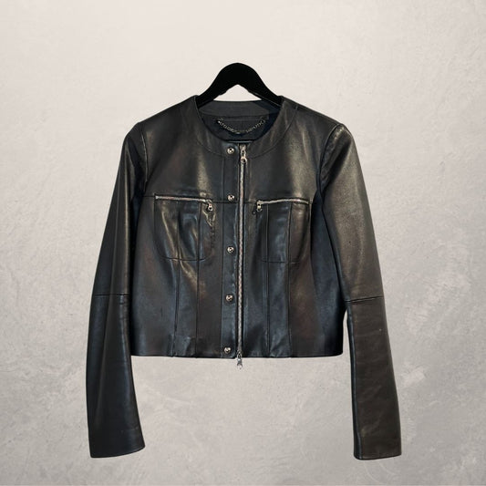 Vintage Loewe zwart leren getailleerde blazer 34/36