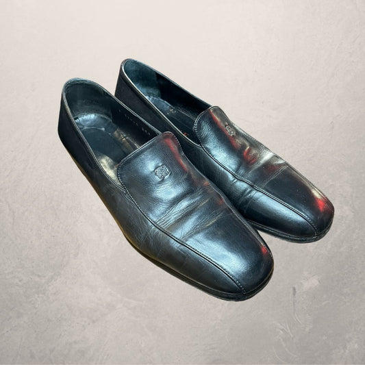 UitverkochtVintage Loewe zwart lederen embleem loafers 38