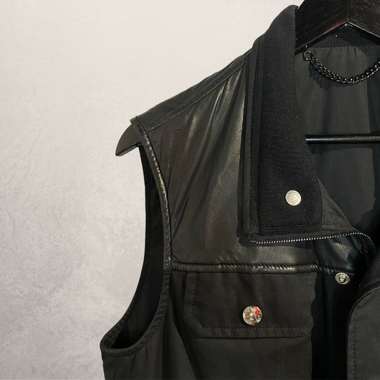 Vintage Loewe zwart omkeerbaar nylon & leren vest S