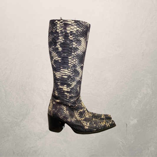UitverkochtVintage slangenhuid kniehoge cowboylaarzen 39
