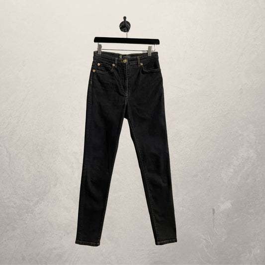 Vintage Versace zwart/gouden Medusa stretch denim broek met hoge taille 36/38