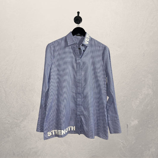 UitverkochtVintage Versace blauw/witte geborduurde kraag XS
