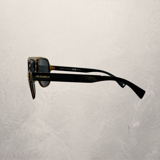 Vintage Versace zwarte/gouden Medusa pilotenzonnebril met etui