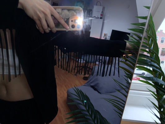UitverkochtZara zwarte leren collectie franjejas S