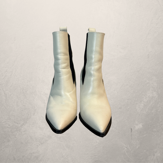 UitverkochtAllSaints witte leren cowboy enkellaarsjes 38