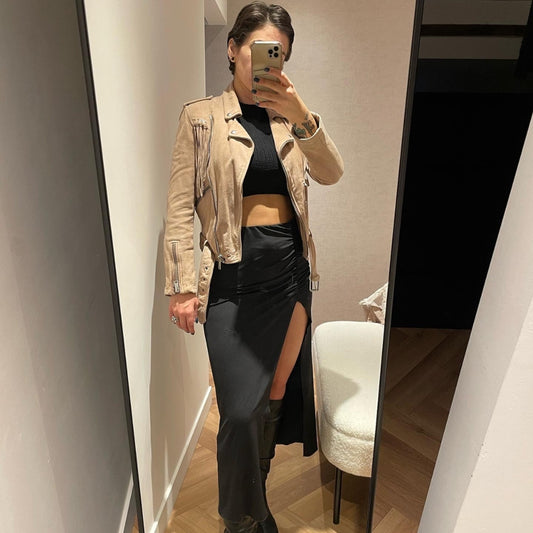 ALL SAINTS camel kwastje geitenleren motorjas MAAT 34