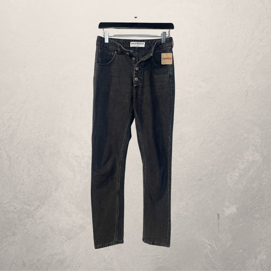 Balenciaga zwarte raw button straight leg denim broek maat 36