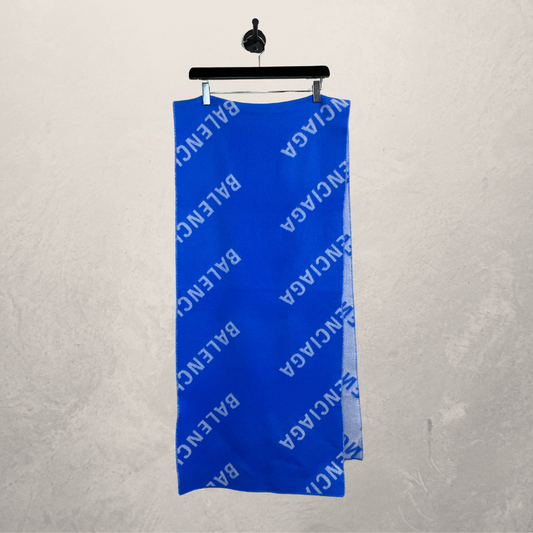 Balenciaga blauwe 100% wollen "all over macro" sjaal 200 x 40cm