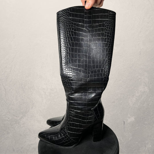 UitverkochtZwarte slangenleer kniehoge laarzen MAAT 38