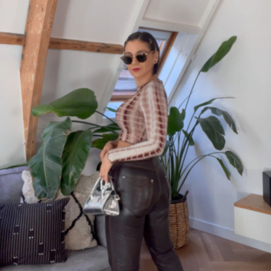 Bruine cropped top met slangenprint en lange mouwen MAAT SMALL