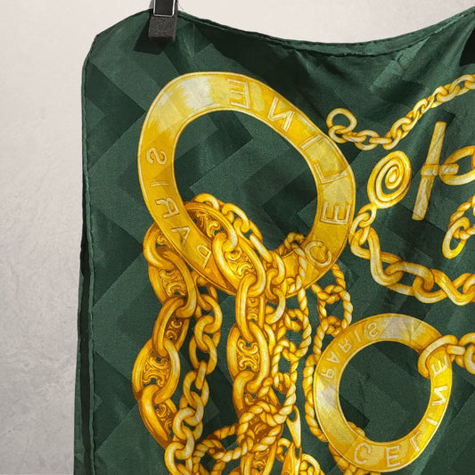 UitverkochtCeline groen goud zijden sjaal 90cm x 90cm