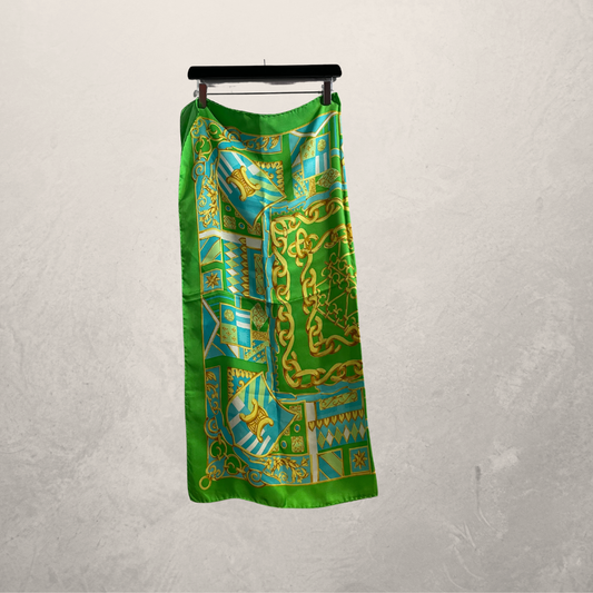Celine groen/oranje 100% zijden sjaal 80cm x 80cm