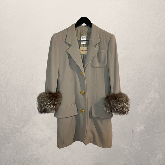 UitverkochtCeline grijze blazer met gouden knopen S/M