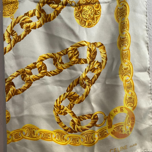 UitverkochtCeline grijs/goud 100% zijden sjaal 80cm x 80cm