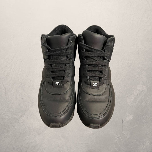 UitverkochtChanel witte zwarte hoge leren sneaker 39