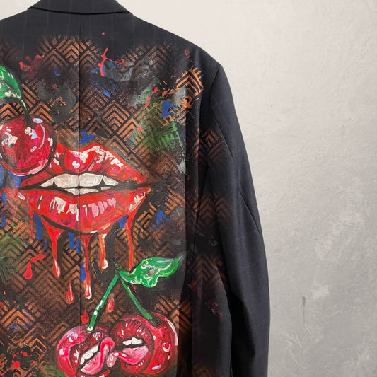 Cherry Lips marineblauwe strepen double breasted vintage blazer L/XL - Door @Marrart