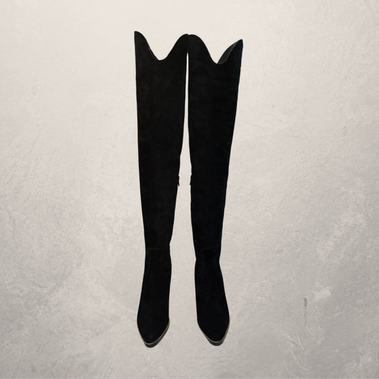 UitverkochtChloe zwart suède/leer over de knie laarzen 38