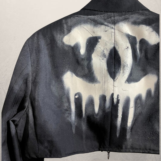Gepersonaliseerde zwarte Chanel logo blazer/rok set XS