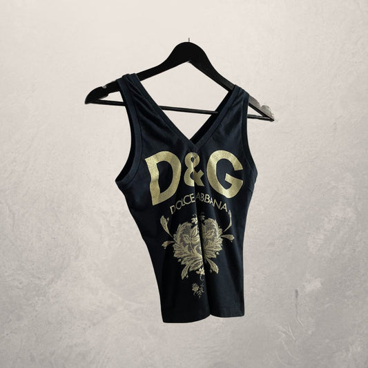 D&G zwarte katoenen tanktop met logo en bloemenprint XS/S-PF