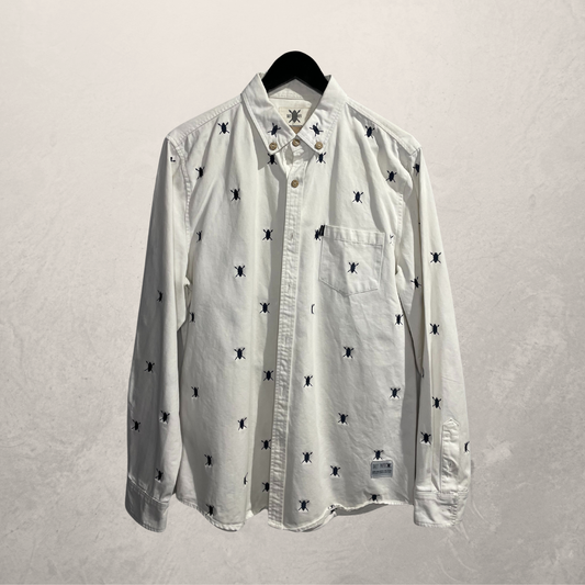 Daily Paper wit geborduurd marineblauw logo LS shirt L