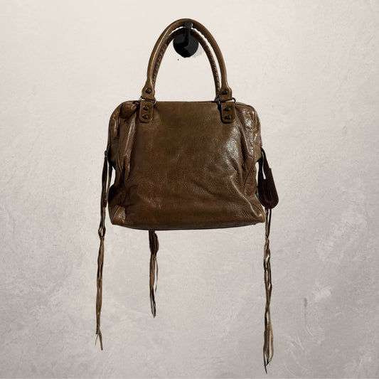 UitverkochtBalenciaga A4 bruine leren tas met franjes