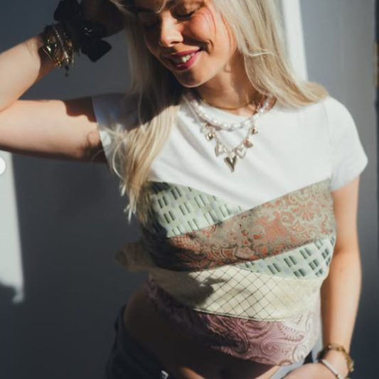 Vintage pastel strepen ZIJDEN Bandeau strik top OS- By WNDYdesign