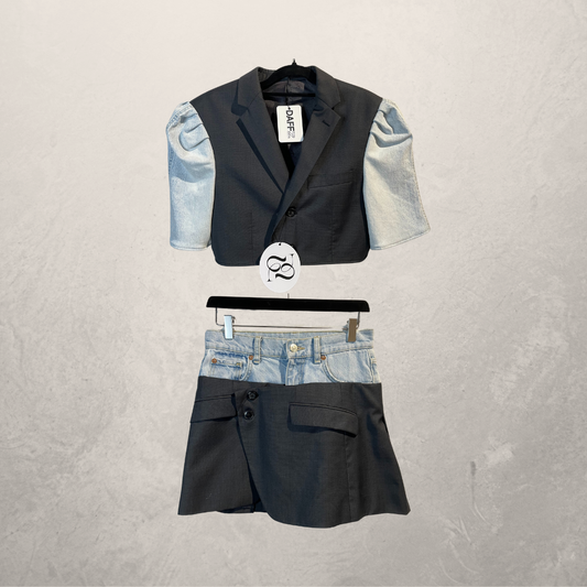 Vintage lichtblauwe denim en zwarte cropped blazer S/M - door @DAFFZTheLabel