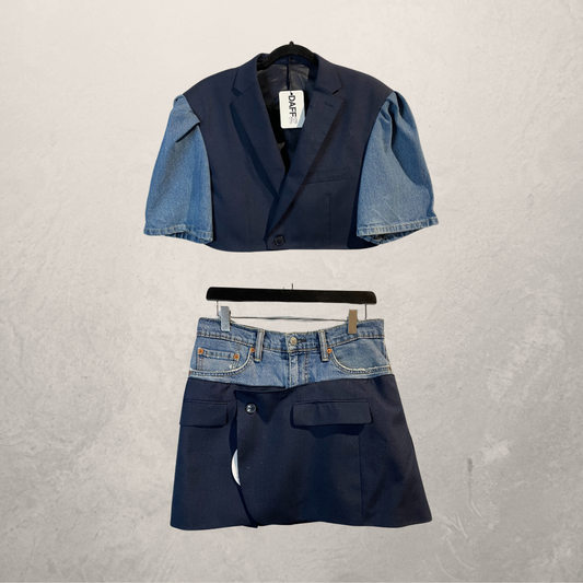 Vintage denim & marineblauwe cropped blazer S/M - door @DAFFZTheLabel