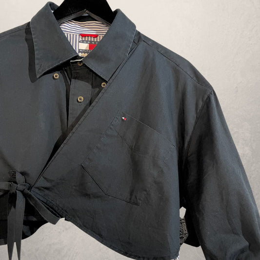 Tommy Hilfiger zwarte cropped wikkelblouse M/L - Van Mees.Makes