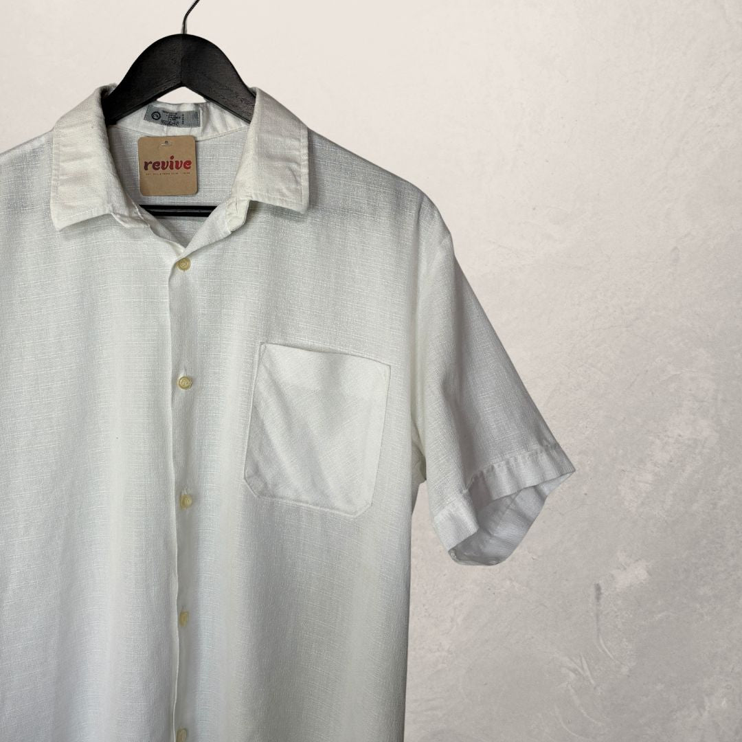 Vintage wit katoenen overhemd met korte mouwen S