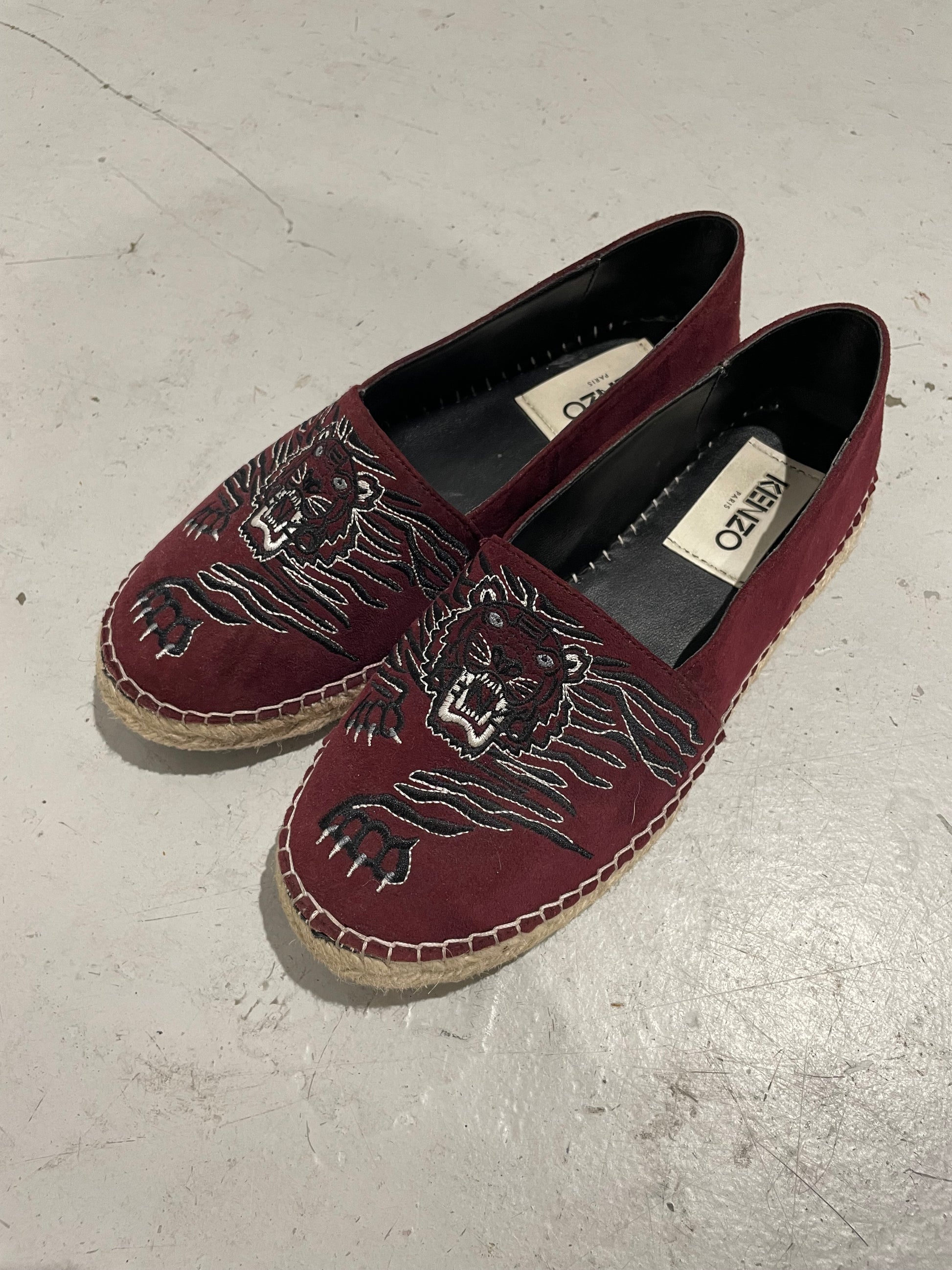 Kenzo bordeauxrode suède geborduurde flats 39
