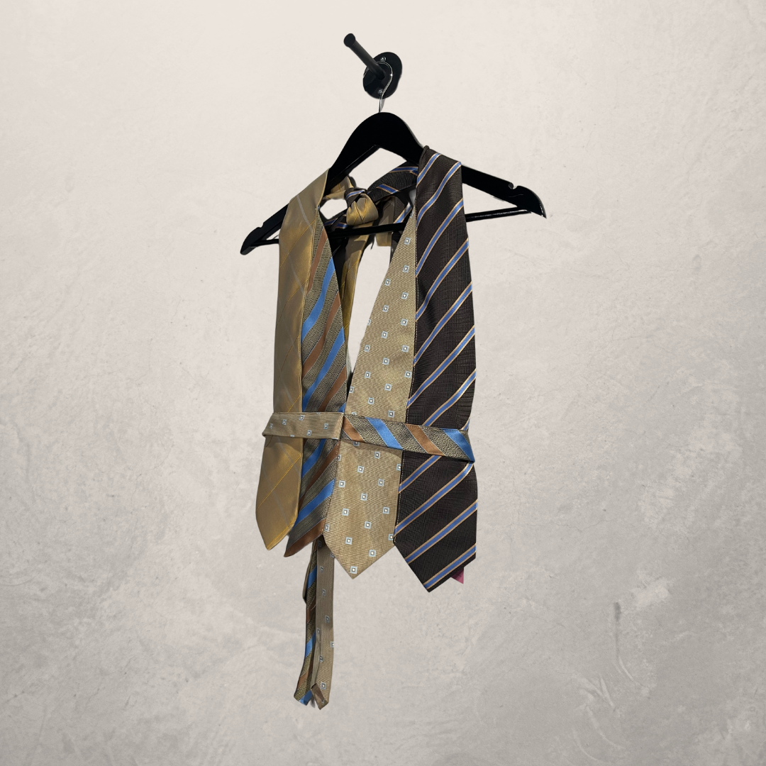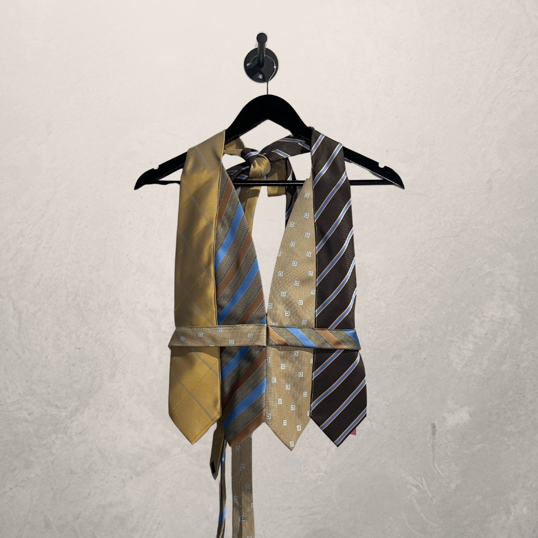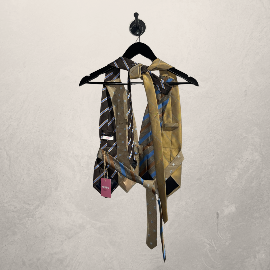 Vintage beige/blauwe haltertop OS- By WNDYdesign