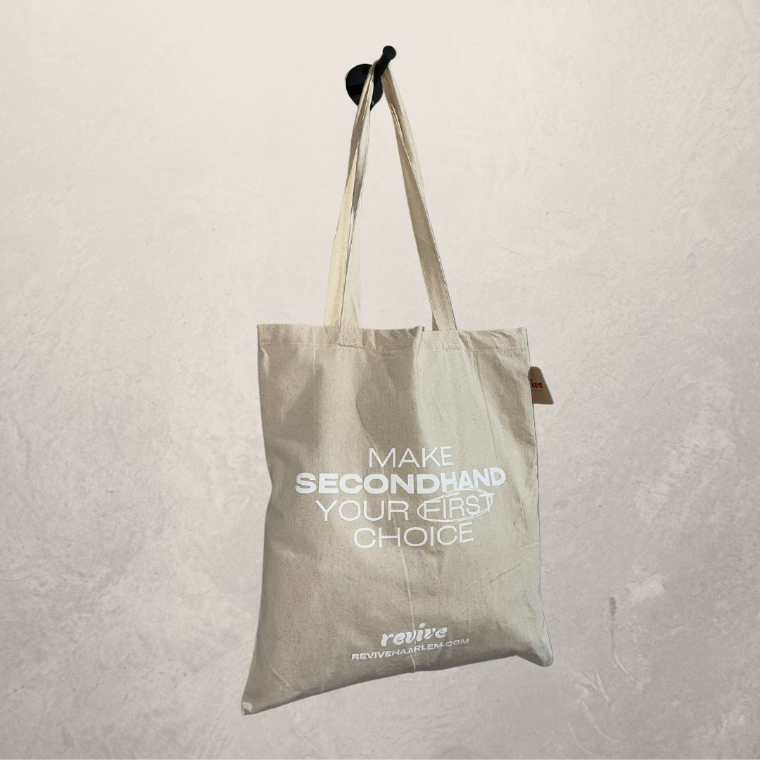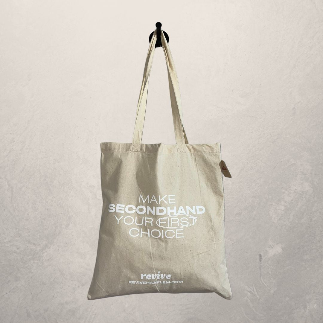 "Maak tweedehands uw eerste keuze" draagtas van gerecycled katoen