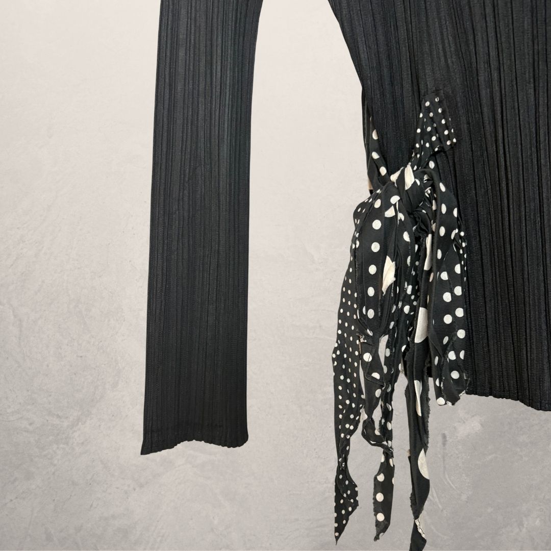Issey Miyake pleats please black polyester longsleeve bow blouse XS