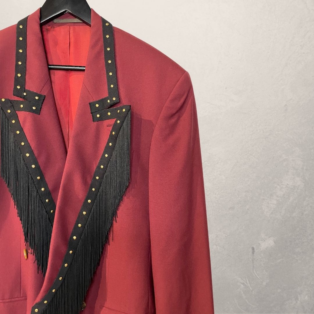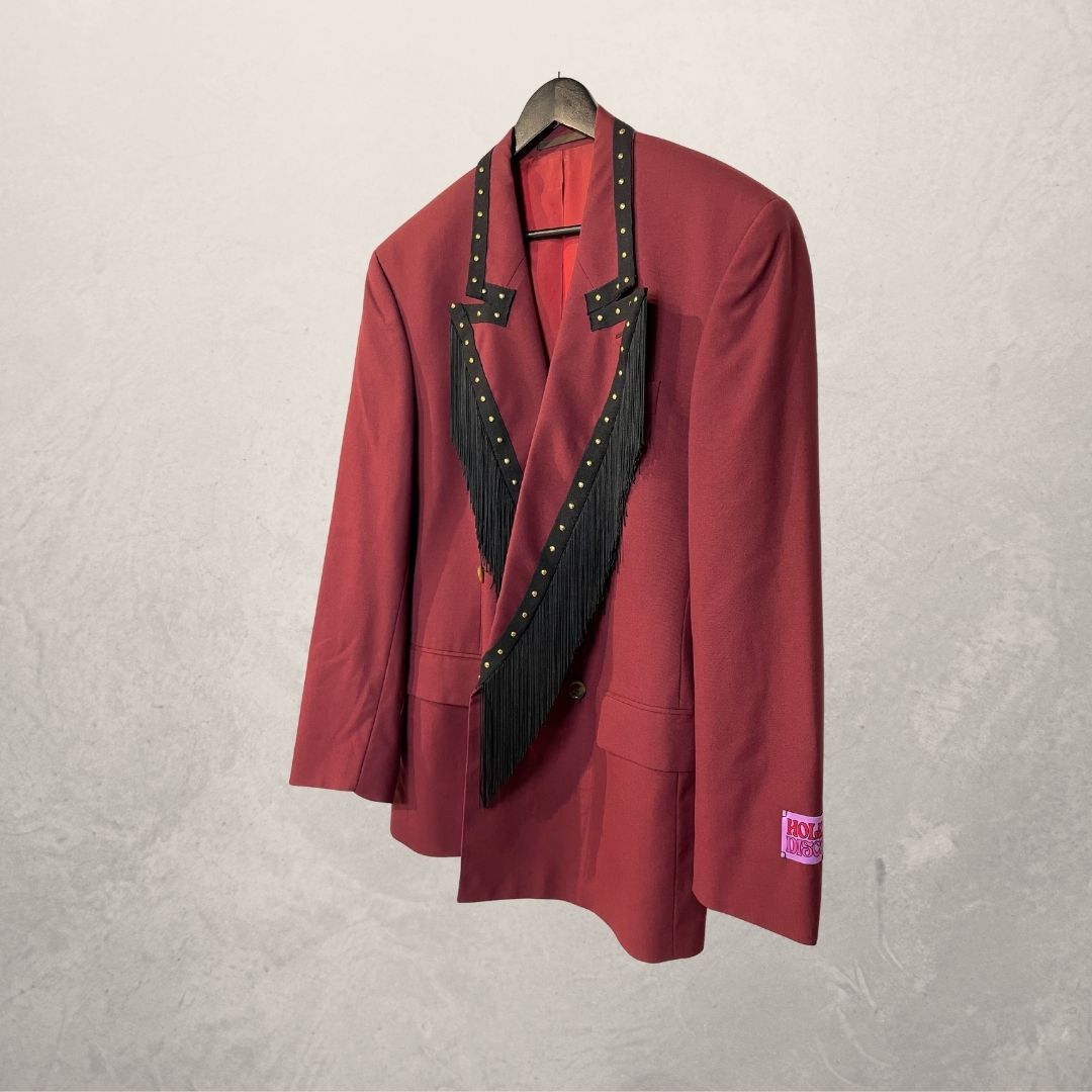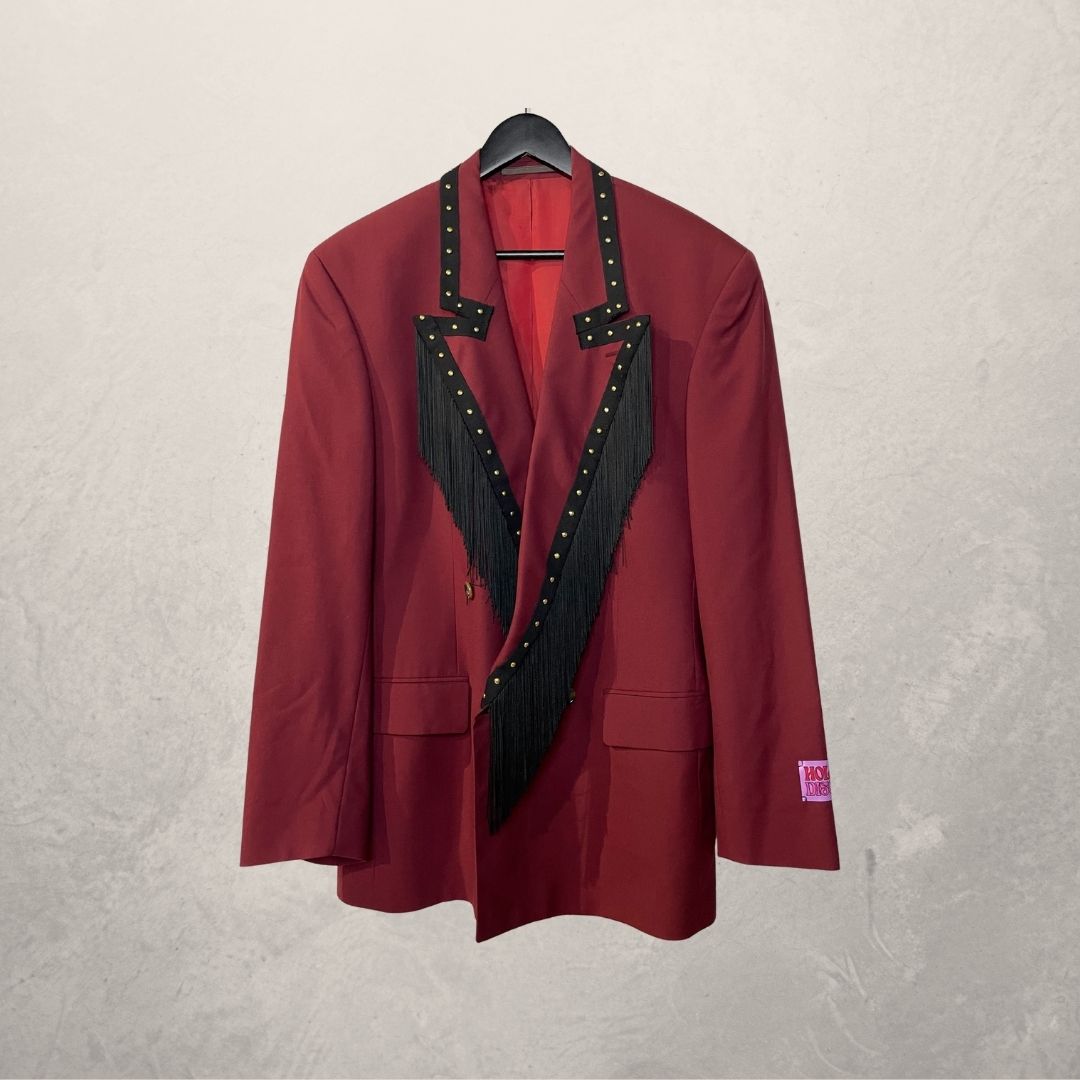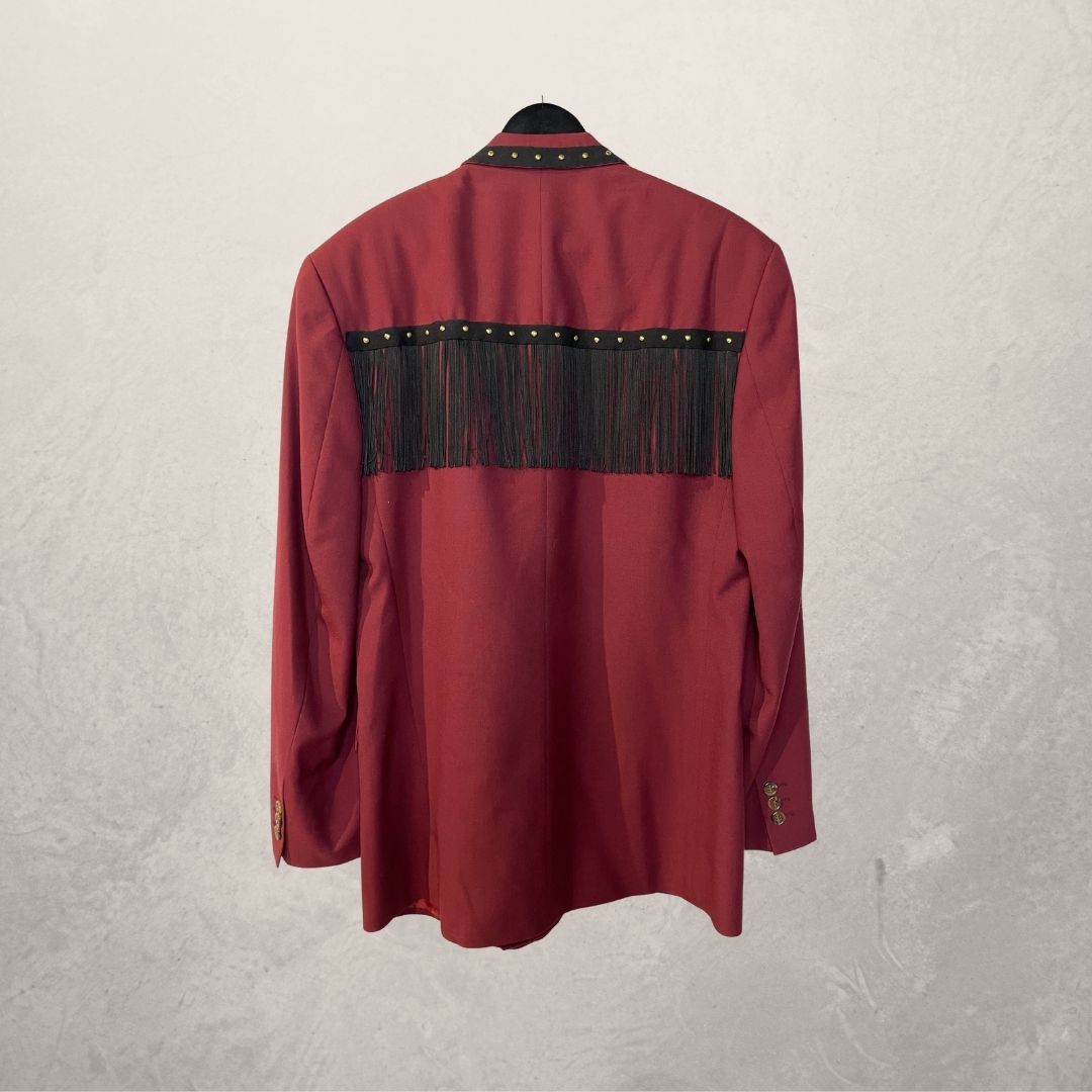 Vintage bordeaux red/ black fringe blazer OS- By Holy Disco