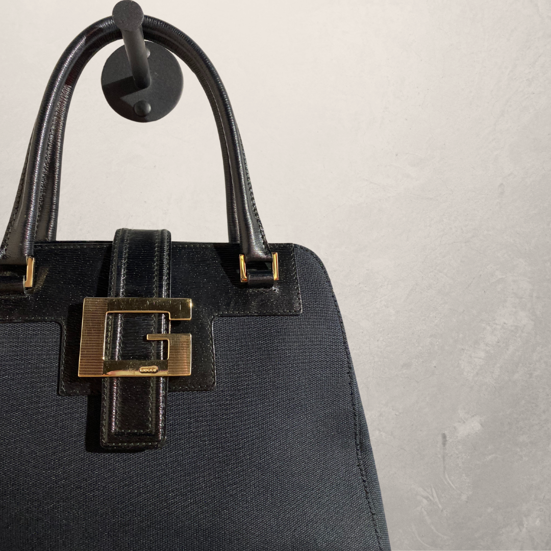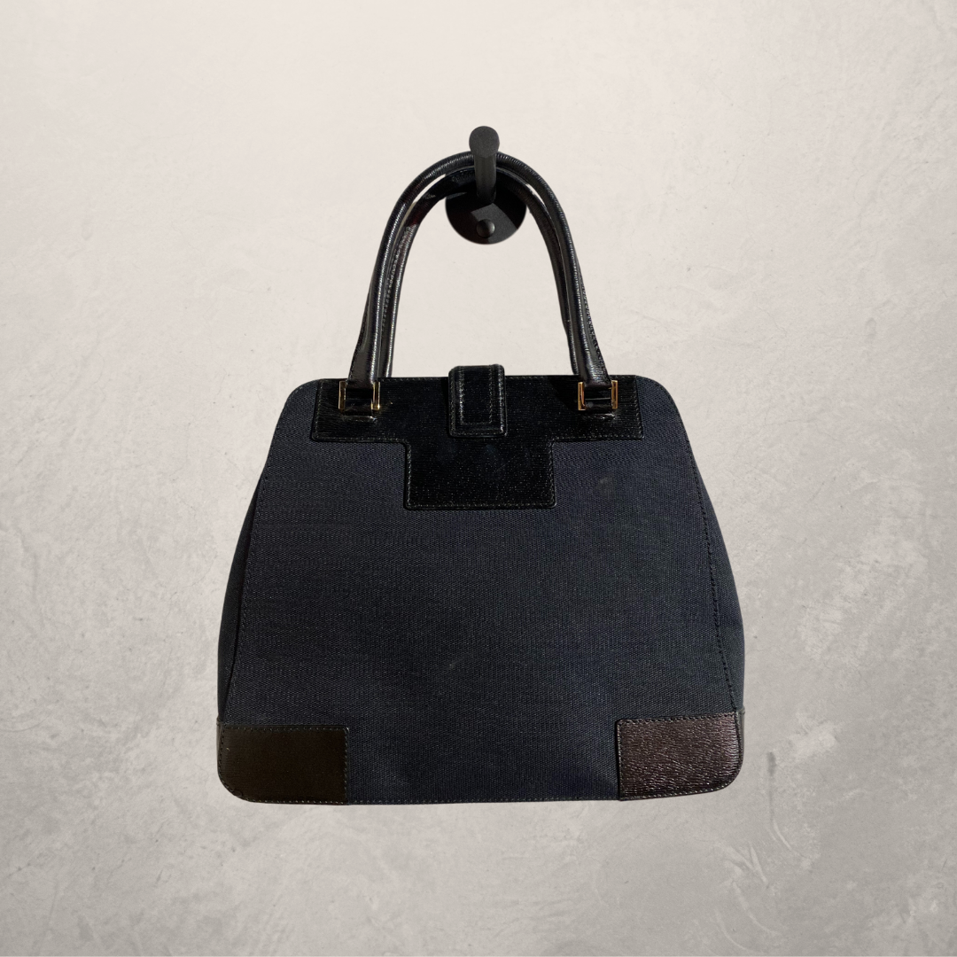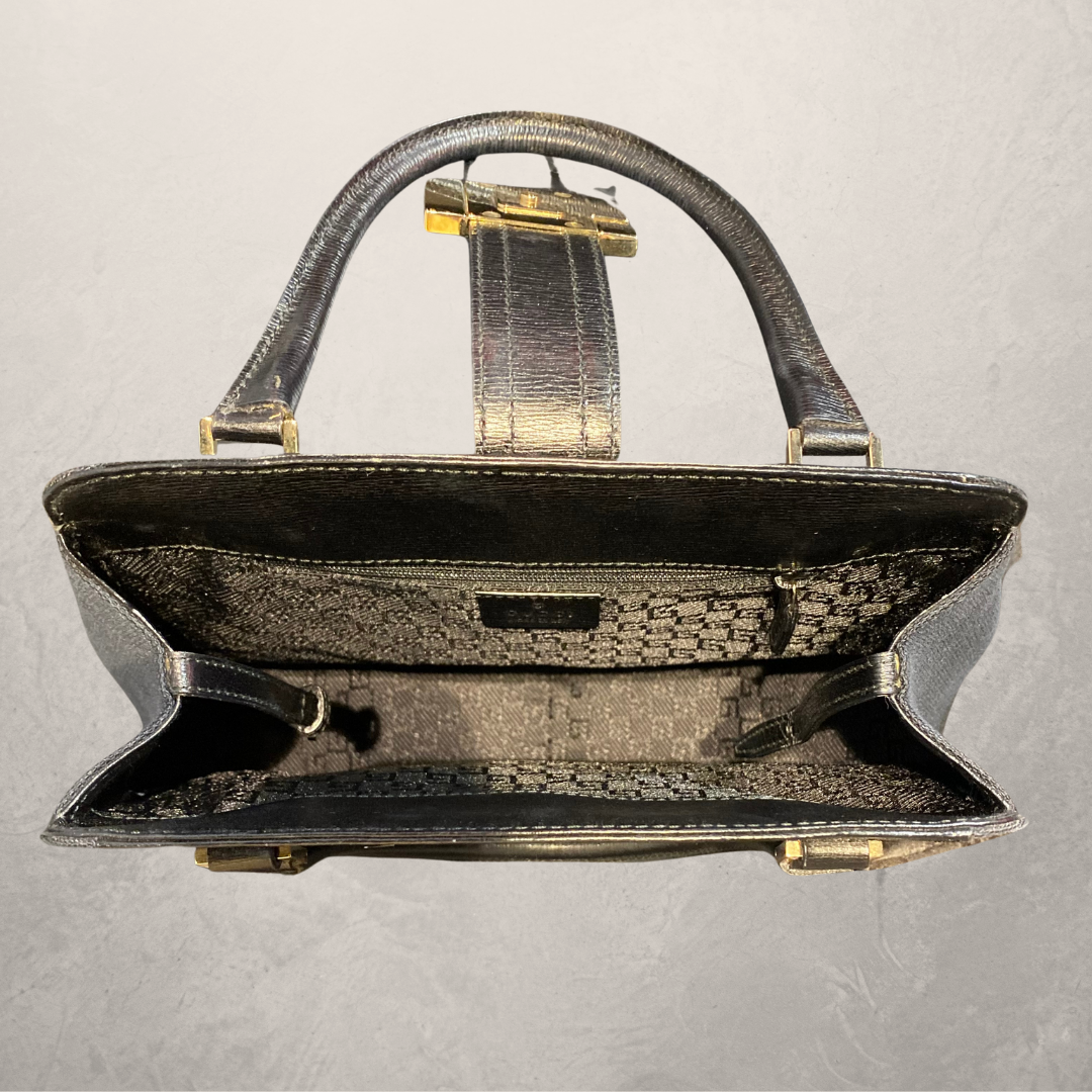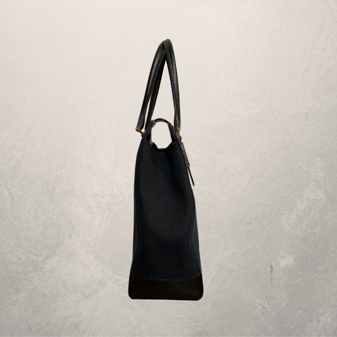Vintage Gucci Jackie black leather and canvas tote hand bag- With dustbag